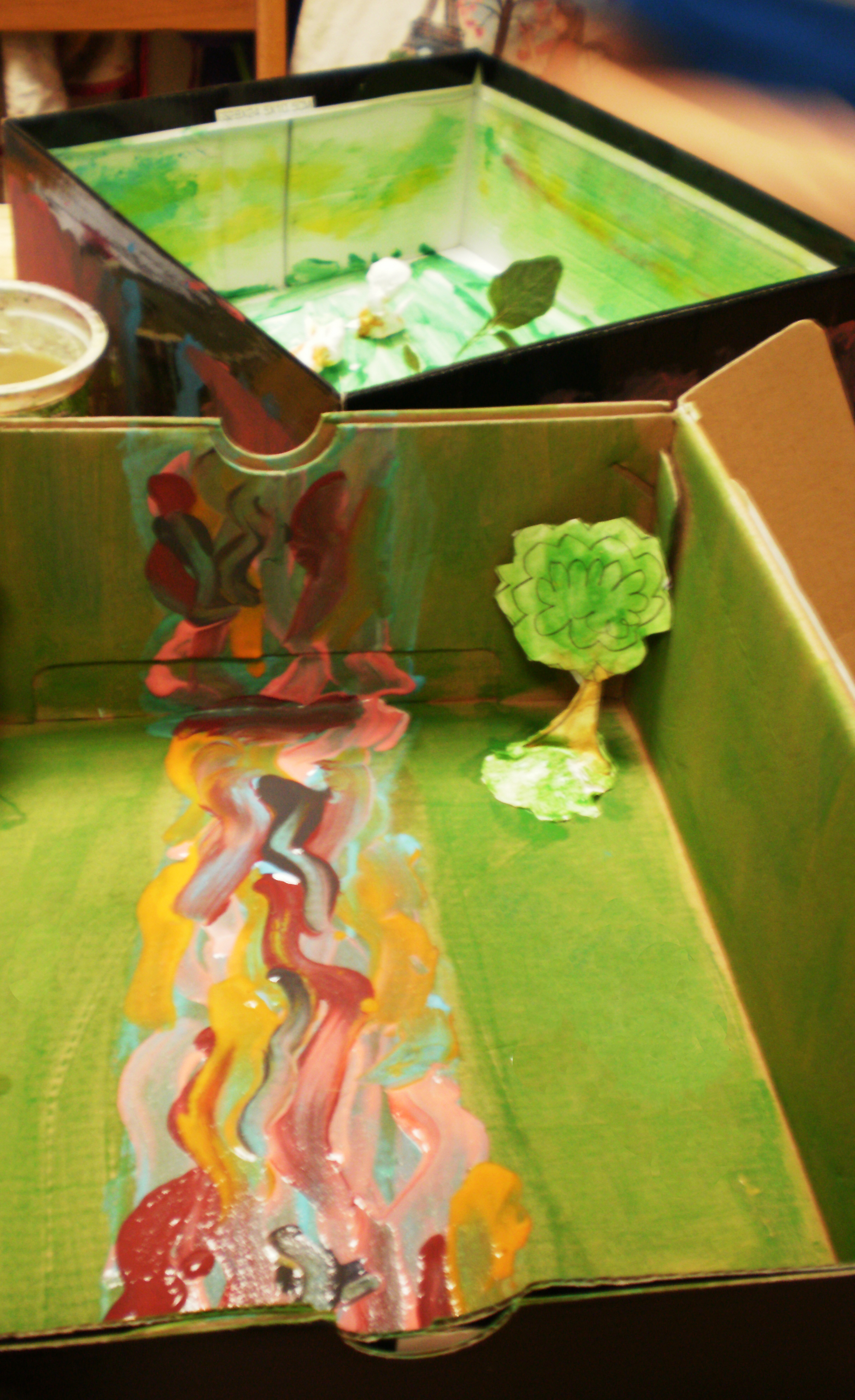 Με αφετηρία επιλεγμένα ζωγραφικά έργα και αρχιτεκτονικές κατασκευές διάφορων πολιτισμών τα παιδιά κατανοούν την σχέση των τεσσάρων στοιχείων στη δημιουργία καθώς και στην καθημερινή ζωή.