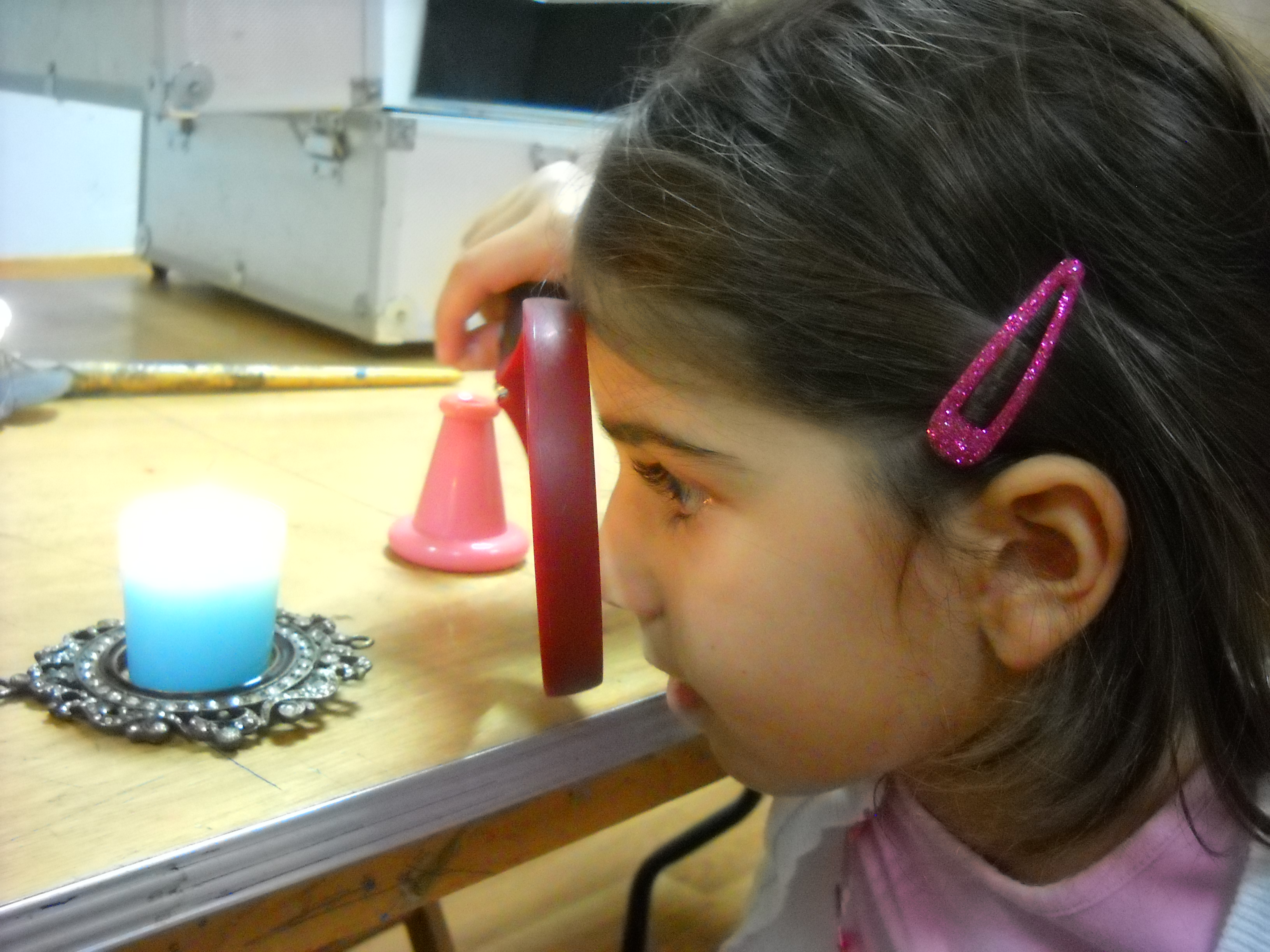 Τα παιδιά μαθαίνουν να παρατηρούν τα παιχνίδια του φωτός επάνω σε καθημερινά αντικείμενα, σε γυαλιά, σαπουνόφουσκες, στον χώρο μέσα και έξω από το εργαστήριο. Οι τοίχοι του μεταμορφώνονται σε ζωντανά πεδία παρατήρησης, ανοίγοντας ένα παράθυρο σε ανεξερεύνητους κόσμους που υπάρχουν γύρω μας αλλά προσπερνιούνται.