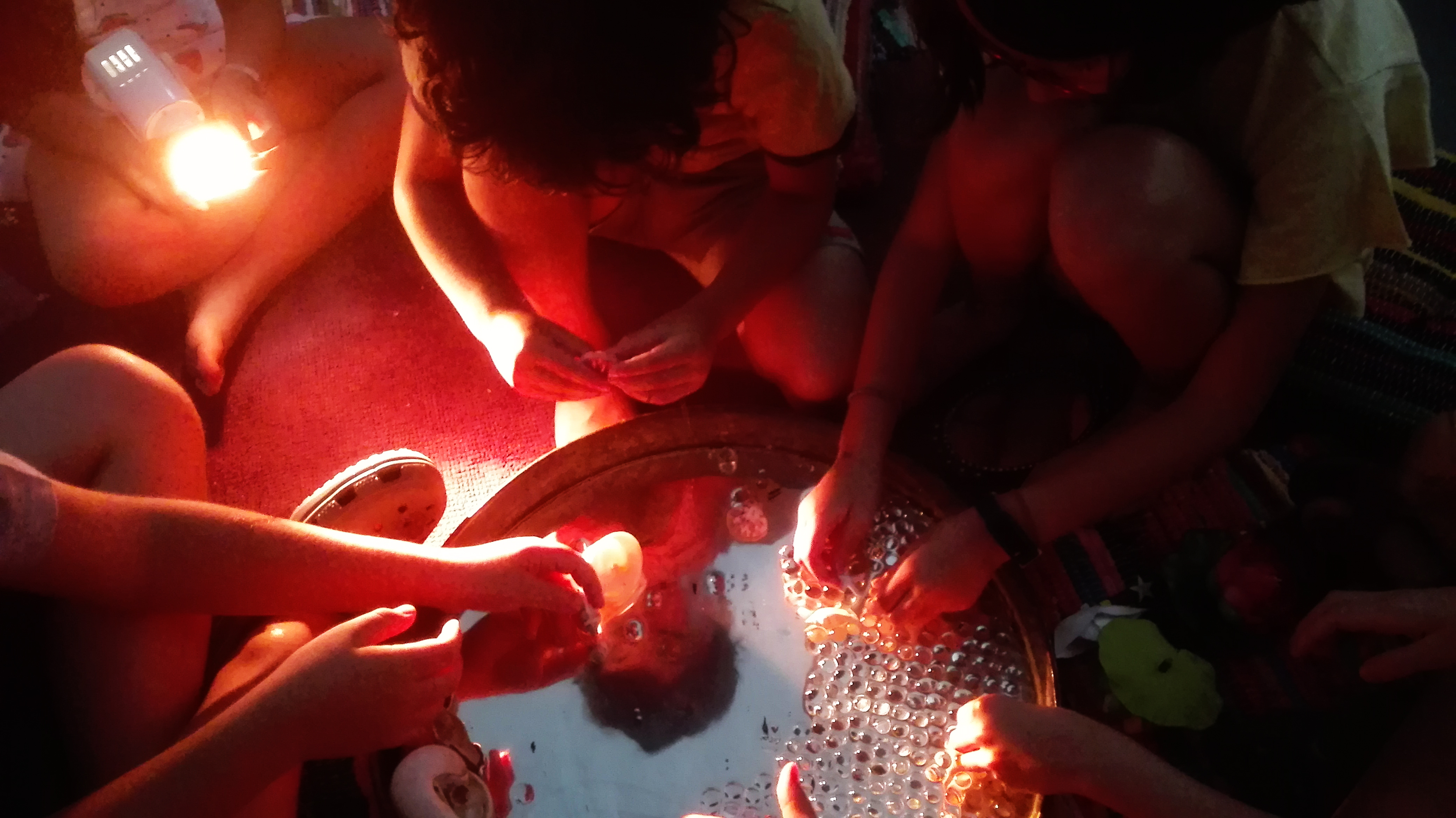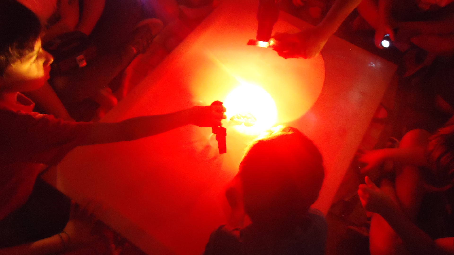 Με “εργαλεία” φακούς, καλειδοσκόπια, καθρέφτες, projectors, μουσικά όργανα κλπ. και με “υλικά” το φως, το νερό, διάφορα χαρτιά, υφάσματα, φύλλα δένδρων, ήχους από την φύση κλπ. καλούνται να εξερευνήσουν και να πειραματιστούν στους “νέους” αυτούς κόσμους.