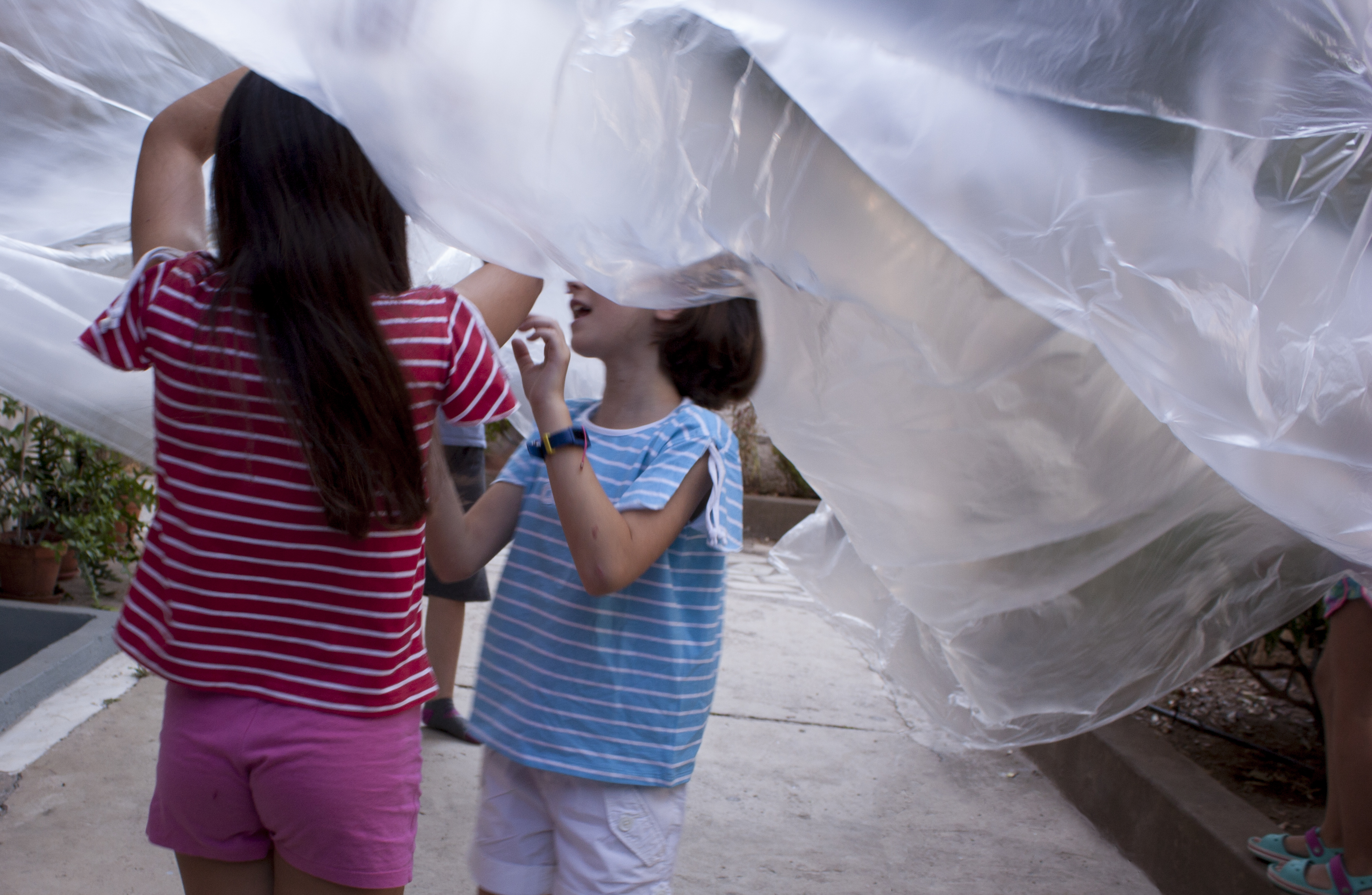 Εμπνέονται μέσα από μια σειρά δράσεων με το φως, το χώμα, τη φωτιά, τον αέρα, το νερό και δημιουργούν εικαστικά έργα και κατασκευές αποτυπώνοντας την εμπειρία των εξερευνήσεών τους.