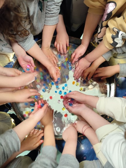 Την Πέμπτη 10 Απριλίου 2025, η Μοβ και η Μπλε τάξη του Παιδικού μας Σταθμού υποδέχτηκαν την εικαστικό – παιδαγωγό τέχνης Έφη Φουρίκη από τον «Σπόρο – εικαστικές εξερευνήσεις» για να αναζητήσουν το φως και να παίξουν με τις σκιές. Στο βιωματικό αυτό εργαστήρι, τα παιδιά έπαιξαν με τις φωτοπεταλούδες, καθώς και με την μικρή φλόγα και την αντανάκλασή της στο νερό! Δοκίμασαν να μεγαλώσουν και να μικρύνουν τη σκιά τους και με την βοήθεια μιας σειράς φίλτρων παρακολούθησαν τον ήλιο να ανατέλλει και να δύει στην Μουσικοτάξη!